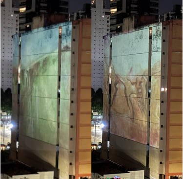 Projeções no Centro de Belém do Pará durante a COP 30