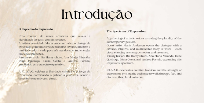 Exposição realizada entre os dias 07 de novembro a 18 de dezembro de 2024 no Centro de Artes Calouste Gulbenkian, do Rio de Janeiro RJ, com obras de seus alunos e professores realizados ao longo do ano. O evento reuniu ampla variedade de criações: pintura, esculturas, fotografias, moda, cerâmica e performances.